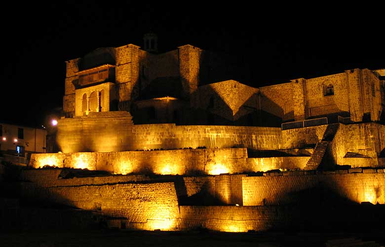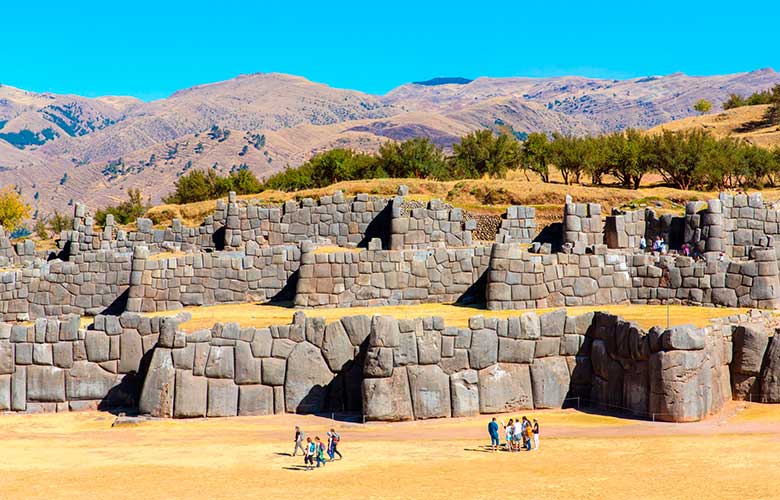 La impresionante fortaleza de Sacsayhuaman esta estratégicamente construida sobre un cerro desde donde se aprecia todo Cusco. Es famosa por sus enormes piedras labradas, algunas de las cuales están a 9 metros ó 30 pies de altura y pesan más de 350 toneladas.