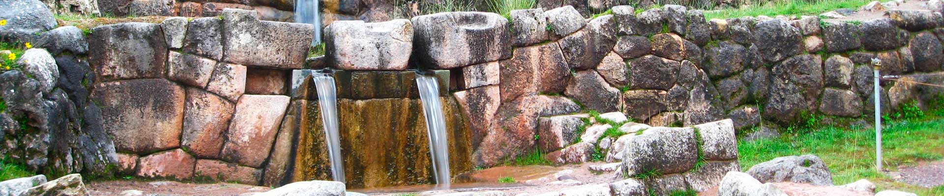 Tambomachay, está ubicado a unos 8 kms. al norte del Cusco y muy cercano a las ruinas de Puka Pukara, es un sitio arqueológico que fue destinado al culto al agua y para que el jefe del Imperio Inca pudiese descansar. Este lugar también es denominado Baños del Inca. Consta de una serie de acueductos, canales y varias cascadas de agua que discurren por las rocas. Lo sorprendente de esto es que, de una cascada principal, los Incas crearon 2 cascadas secundarias, las cuales son exactamente iguales. Es decir, si uno coloca dos botellas vacías, una en cada cascada, las 2 se llenan al mismo tiempo.