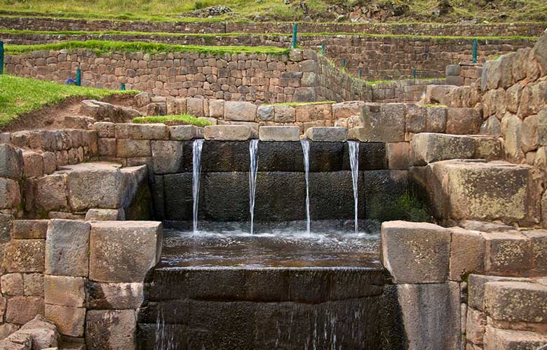Se dice que Tipón fue un jardín real encargado por Wiracocha; es uno de los mejores ejemplos de andenería agrícola creada por los incas; estas terrazas se extienden por el estrecho valle y son alimentadas por manantes provenientes desde el Apu (montaña) Pachatusan. También podrá ver un complejo de templos, canales de irrigación y acueductos. Este complejo arqueológico se encuentra a 24 km al sureste de Cusco.